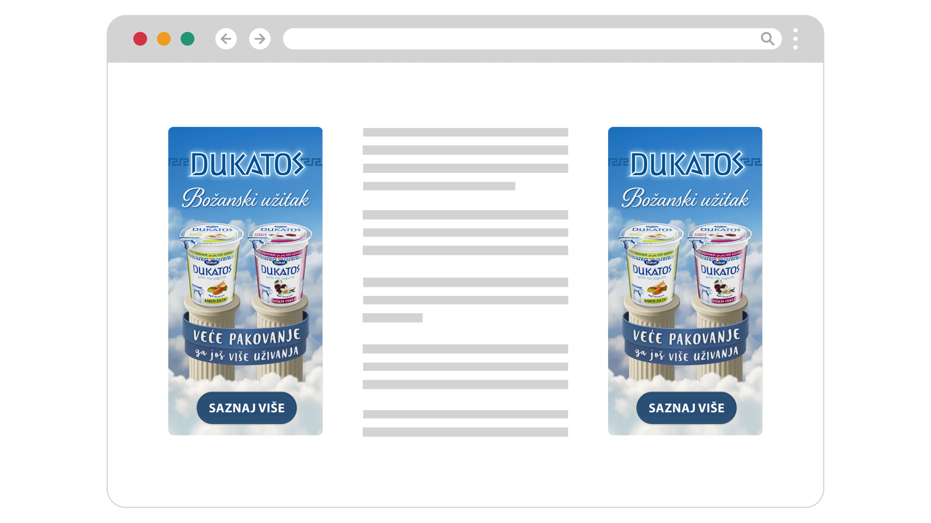 Naš tim je za Dukatos kreirao multiformatnu veb kampanju, sa fokusom na promociju novih, većih pakovanja jogurta sa ukusom - Badem-pistaći i Višnja-vanila.